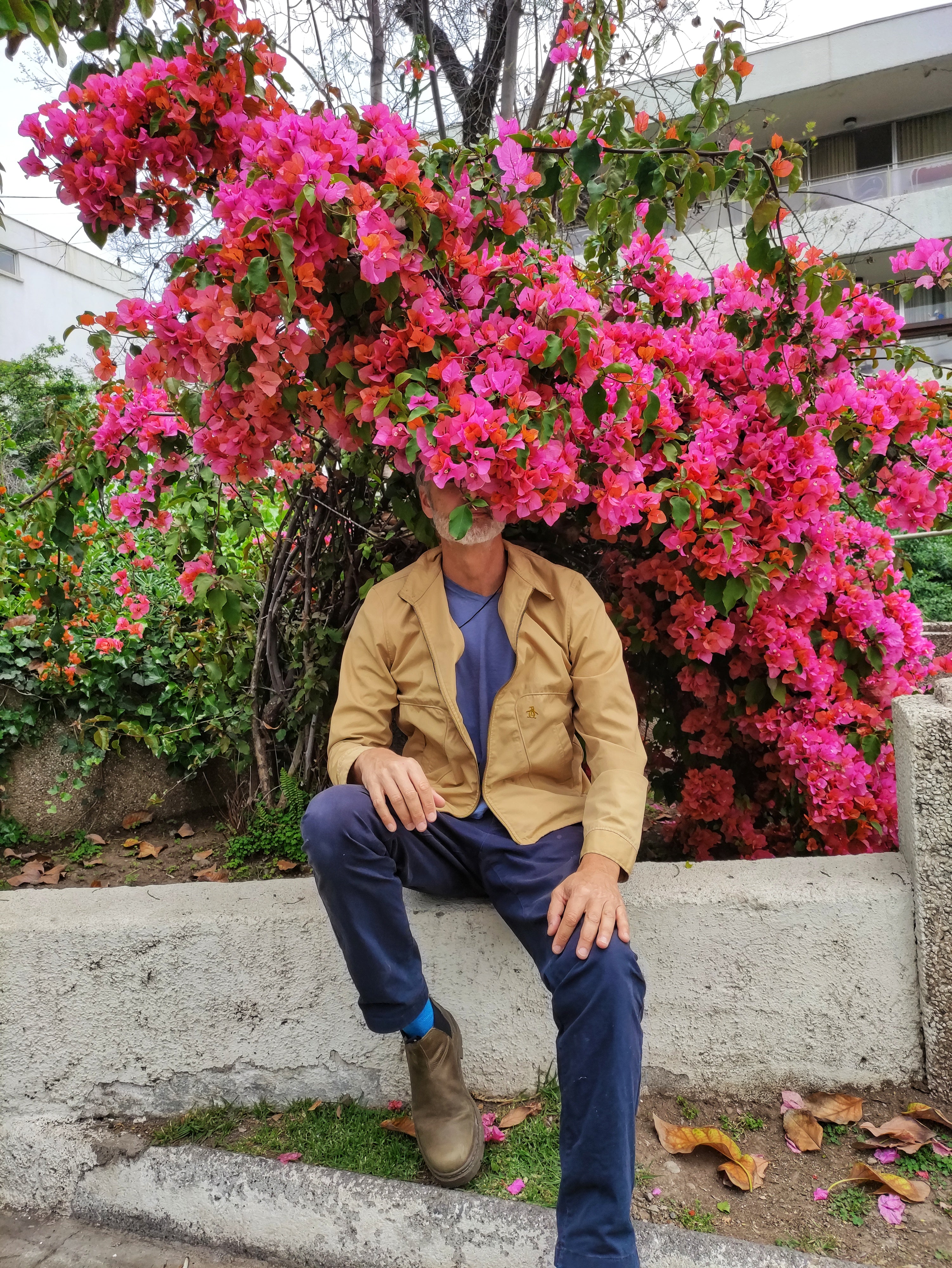 Vivo y trabajo en Santiago, Chile. Suelo adelantarme a las primeras luces del amanecer que entran por la ventana. La distancia que recorro a mi taller es la misma que demora un pájaro carpintero en sobrevolar mi cabeza. Un taller abierto al jardín de la casa . Un poco adicto al mate y al dulce. Naturalmente la música a fondo empapa mi entorno. También pinto.
